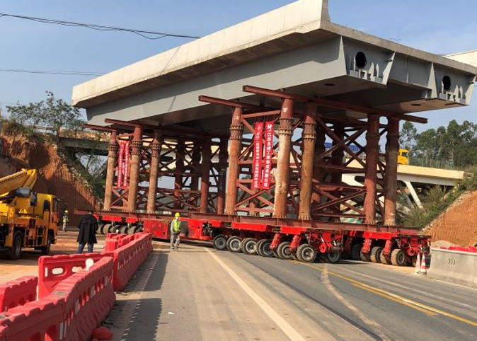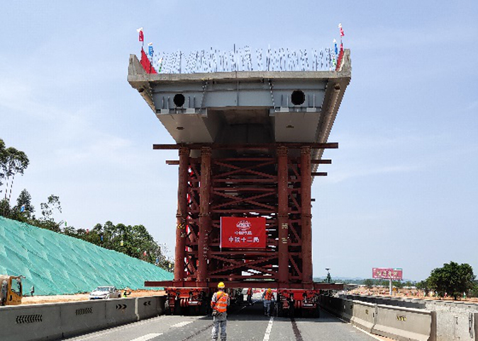 在这次拆建天桥任务中, 5号天桥新梁体最重,长40米、宽12米,重700多吨,相当于500多辆普通小轿车的重量。“由于运载的梁体重量都在500-700吨左右,在运输过程中要始终保持梁体的平衡,避免引起倾覆。4组模块车在运载梁体时必须保持同步,要精确控制模块车行驶速度,每分钟约行驶8米。