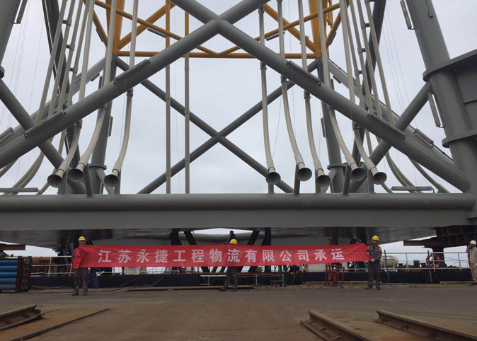2019年5月14日,我司运用SPMT模块车结合滚装上船的方式,自制特定装置及绑扎工艺,采用整体立式发运,充分确保了项目的顺利完成。