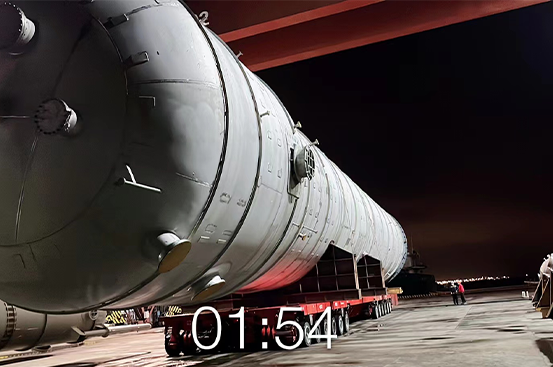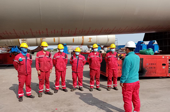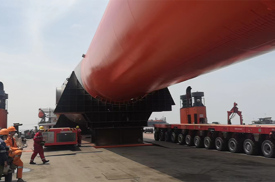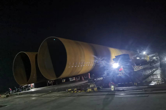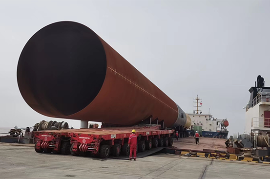 项目一:凌晨24时两根管桩顺利滚装上船