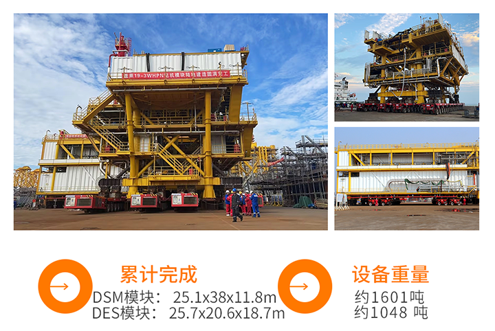 继10月9日,蓬莱19-3 WHPN模块钻机项目 DSM模块和DES模块模块滚装上船之后。10月15日WHPH钻机项目模块短驳运输也如期顺利完成。这两批模块的顺利运输,是我司在海工领域的又一项重要里程碑,为后续深入参与高端海工项目夯定了坚实基础。