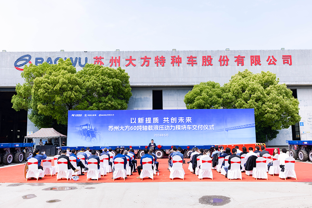 2024年5月6日上午,江苏永捷特种装备有限公司首批国产100轴线60吨级轴载SPMT交付仪式在苏州大方隆重举行。此次交付标志着永捷装备的发展再上新台阶,继续稳居国内单一品牌SPMT拥有量榜首,具有里程碑意义。