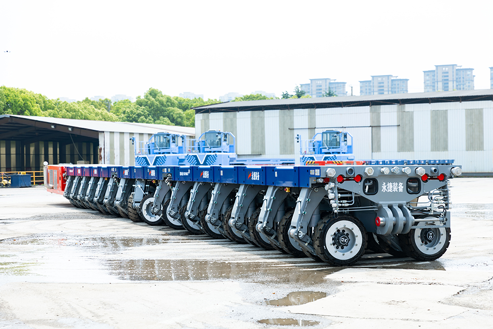 在发展新质生产力的赛道上,永捷装备以“新”促“质”、以“质”催“新”引领重大件运输行业高质量发展。首批国产60吨级轴载SPMT是永捷装备和苏州大方针对客户的应用场景深度研究联合研发的成果,每轴线载荷由48吨级升级到60吨级,且能够实现与轴线载荷48吨级模块运输车并车同步运行,可满足更高要求的桥梁建造、大型海工模块运输以及其他特殊重大型设备的移运,打破了国外同类产品的技术封锁。