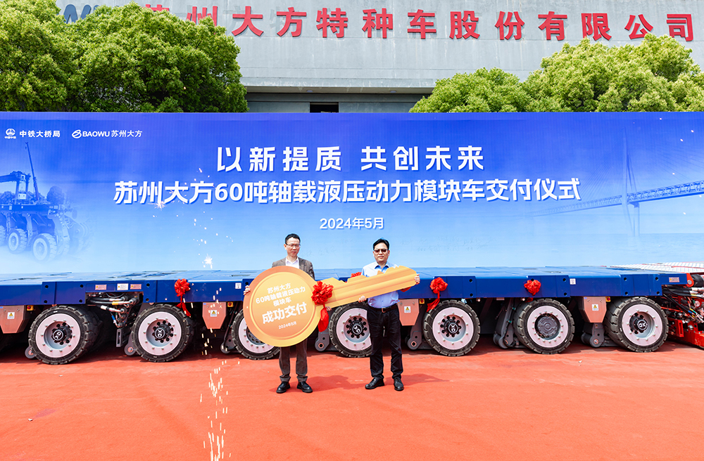 在交车仪式上,永捷装备副总经理黄河先生表示,永捷装备积极响应国家号召,大力发展新质生产力,始终坚持自主创新,持续对资源装备进行迭代升级,不断提升和完善企业核心竞争力。此次首批国产60吨级轴载SPMT的交付开启了永捷装备与苏州大方、中铁大桥局合作的新篇章。三方以此为契机,进一步加强在技术研发、产品升级、桥梁建设等领域交流合作,推动SPMT向“高端化、智能化、绿色化”发展,用大国重器绘制中国桥梁事业新蓝图。