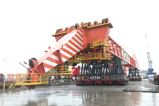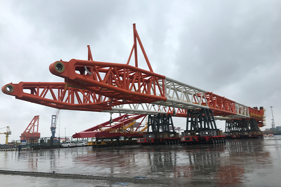 三月以来,为使全新一代3500吨全回转海洋起重机顺利完成总装,永捷SPMT专业团队在3月1日-3日、16日-18日、20日-22日等,经过数日的努力奋战,顺利完成了回转平台、H25014底盘、臂架、A字架等超大型结构件的移运工作,为3500吨全回转海洋起重机顺利总装打下坚实基础。