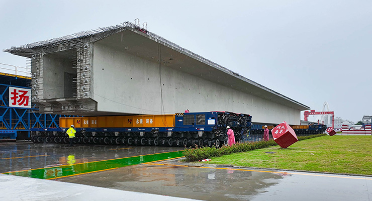 超级工程牵引超级装备,超级装备助建超级工程,永捷装备精益求精,追求卓越,展现出专业的创新能力和强大的移运实力,为后续箱梁的转运奠定坚实基础。