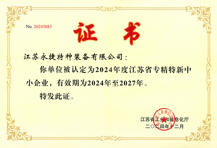作为产业创新升级的重要风向标,“专精特新”认证聚焦专业化、精细化、特色化、新颖化四大维度,遴选出细分赛道的领跑者。此次获评“江苏省专精特新中小企业”,不仅是对永捷装备多年来深耕行业、锐意创新的高度认可,更彰显了其在重大件移运领域实现从技术创新到市场价值的全方位突破: