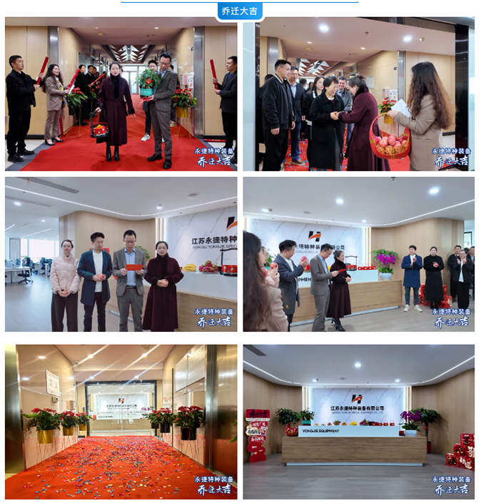 2025年12月12日,江苏永捷特种装备正式乔迁新址!全新的办公空间以更加开阔通透的布局、全面升级的配套设施,为团队打造更舒适高效的办公体验。